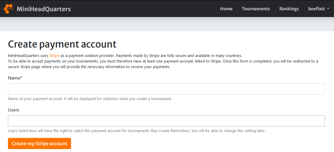 In practical terms, this means that to collect payments on MHQ, you need to create a Stripe account.