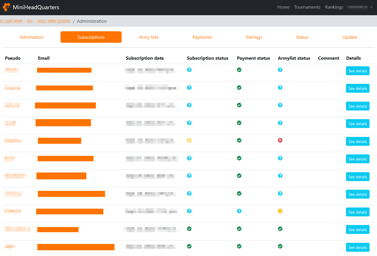 In the Army lists tab, you can manage army lists validation.