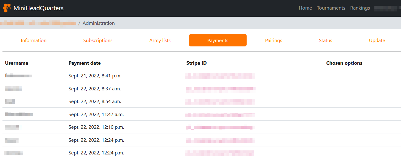 Payments tab helps you see players payments and configure payment options.